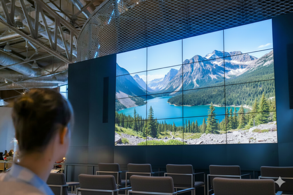 Folosim display-uri profesionale cu rame (bezels) extrem de subtiri pentru a minimiza distanta dintre ecrane, creand o imagine unitara, fluida si continua, care nu distrage privirea.Datorita procesorului de Video Wall dedicat, continutul (text static, grafica, videoclipuri HD sau chiar transmisiuni live) este afisat perfect sincronizat si cu o uniformitate cromatica optima pe toate ecranele.